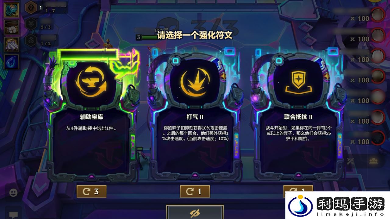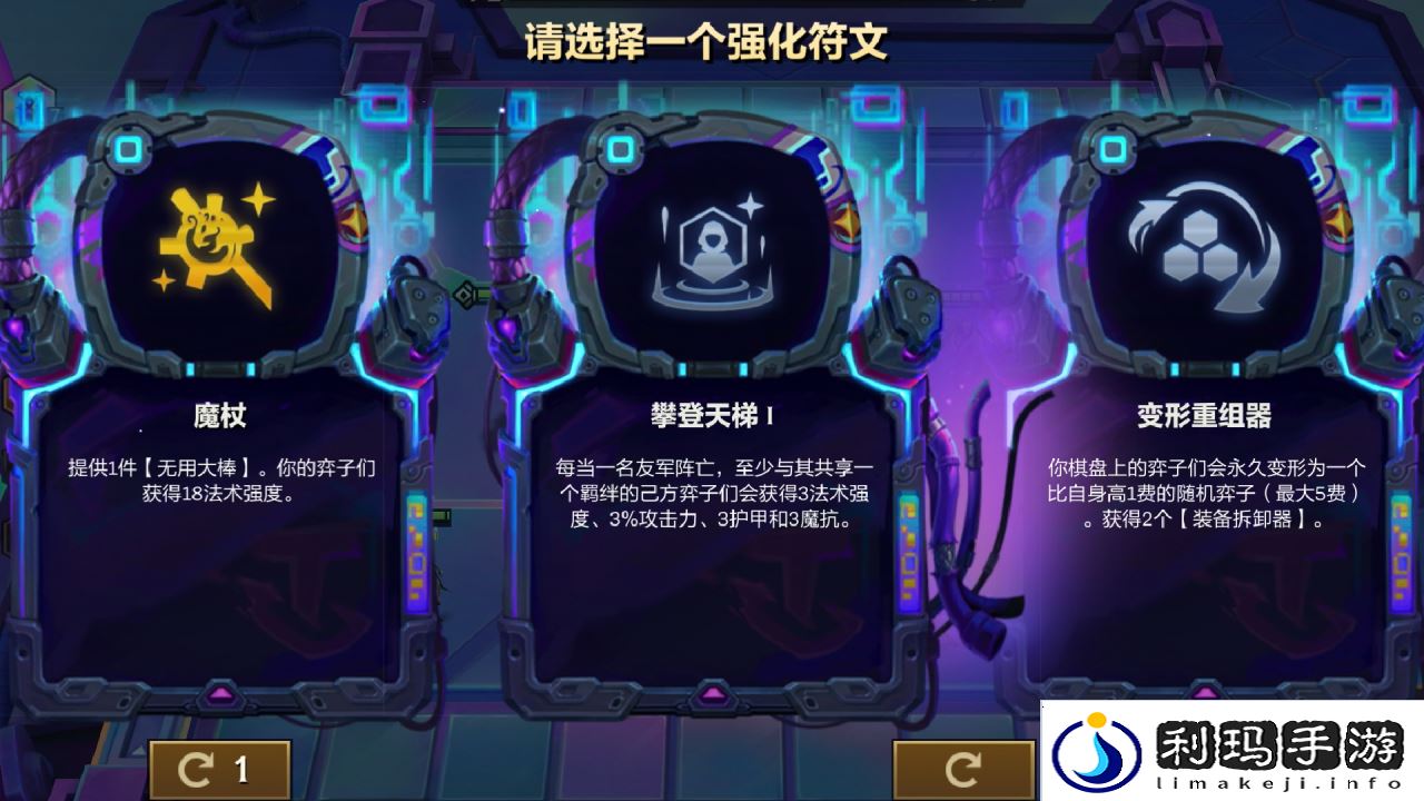 1v2强化符文:选择一个较强的黄金强化符文,或选择两个可能有协同效果,但强度较弱的白银强化符文。